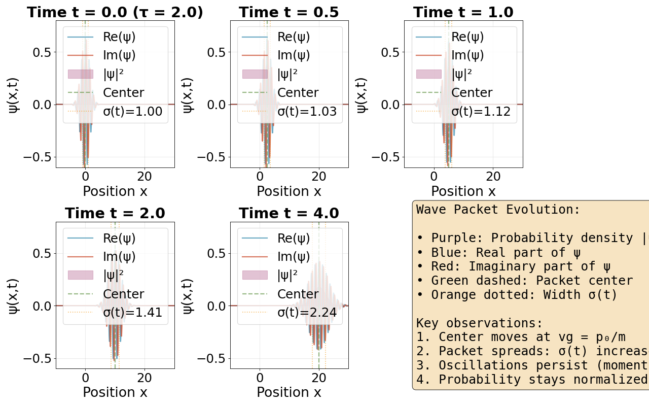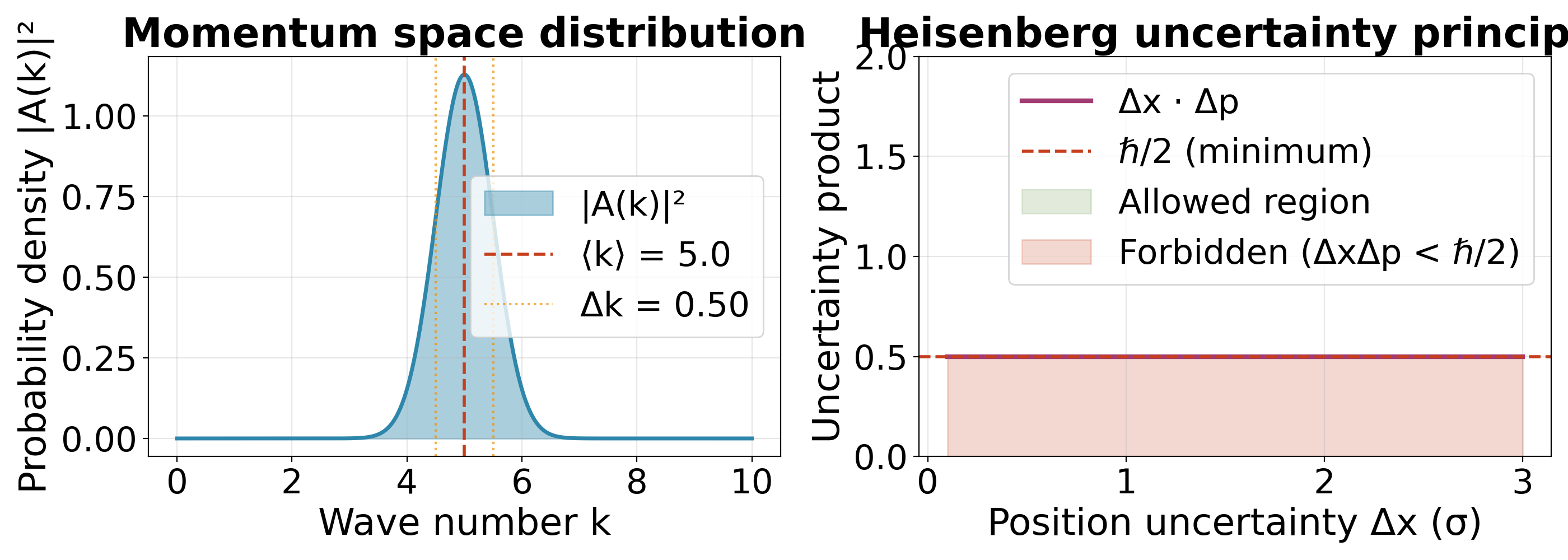 Key insight: As the position-space packet spreads (\(\sigma(t)\) increases), the momentum-space width stays constant!